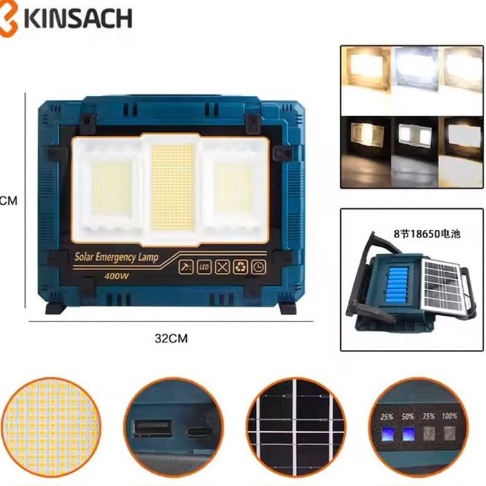 پروژکتور 800 وات W8121-2 یکی از پیشرفتهترین و کاربردیترین چراغهای شارژی خورشیدی موجود در بازار است که ترکیبی از قدرت نور فوقالعاده، طراحی مهندسیشده و امکانات چندمنظوره را در یک محصول جمعآوری کرده است. این دستگاه نه تنها یک پروژکتور پرقدرت است، بلکه به عنوان یک پاوربانک مطمئن نیز عمل میکند و در شرایط اضطراری امکان شارژ انواع دستگاههای دیجیتال را فراهم میسازد.این چراغ با طراحی ارگونومیک، وزن متناسب (2824 گرم) و ابعاد ایدهآل (370x315x125mm) بهراحتی قابل حمل بوده و برای محیطهای مختلف از جمله کمپینگ، سفر، کوهنوردی، باغ، کارگاه، پروژههای ساختمانی و شرایط اضطراری یک انتخاب ایدهآل محسوب میشود.