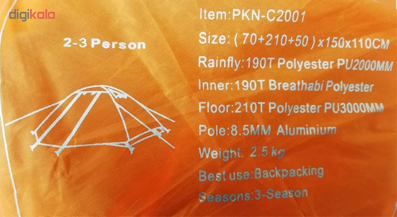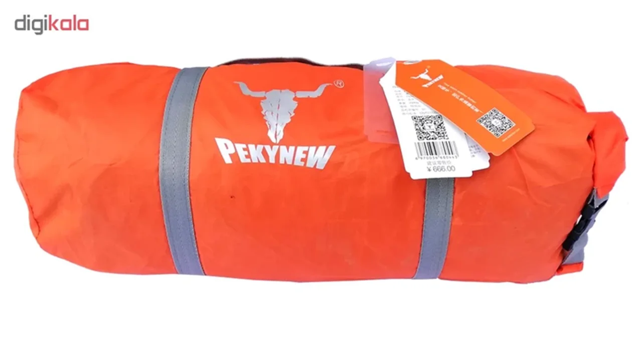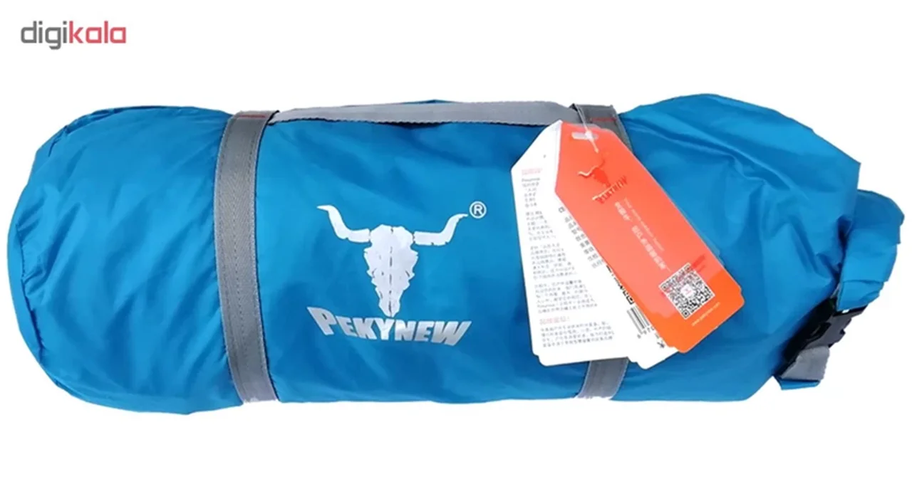 چادر دو نفره پکینیو (کله گاوی) مدل c2001 در برابر باران و طوفان کاملا مقاوم بوده تا شما بتوانید داخل چادر خود به راحتی استراحت کرده و در شرایط جوی بد هیچ نگرانی نداشته باشید. این چادر با دارا بودن یک روکش ضد باران شرایطی را فراهم می کند تا در هنگام باران، رطوبت از طریق زمین و رویه چادر به داخل نفوذ نکند. استفاده از ستون بندی آلومینیومی به قطر 8.5 میلی متر که با هشت گیره در چهار طرف زمین متصل می شود موجب افزایش مقاومت آن در برابر طوفان شده است . چادر دونفره کله گاوی دارای دو هواکش است تا شما بتوانید به راحتی هوای داخل آن را عوض کنید.و همچنین با استفاده از پشه بند موجود در آن از ورود حشرات به داخل جلوگیری کنید. این محصول دارای یک قلاب در سقف برای آویزان کردن چراغ قوه و دیگر وسایل روشنایی نیز هست که به راحتی می توان چراغ قوه را در سقفش آویزان کرد.برند pekynew که به کله گاوی نیز معروف است چادر هایی با کیفیت بسیار بالا تولید میکند. ستونهای آلمینیومی قدرتمند ، مواد مرغوب و ضد آب بودن از ویژگیهای بارز این چادرها به حساب میآید
