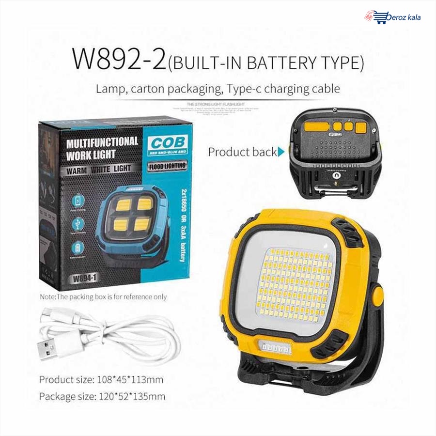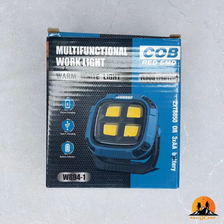 چراغ کمپینگ شارژی مدل w894-1 از لوازم روشنایی کمپینگ ضروری در هنگام تاریکی شب است. جنس بدنه آن از پلاستیک فشرده ABS بوده و بسیار سبک و جمع و جور است. منبع تغذیه آن 2 باتری از نوع 18650 است که قابل شارژ هستند.می توان از چراغ لنسری شارژی قابل حمل مدل w894-1 در سایر فعالیت ها مانند تعمیرات ماشین، فضای باز، ماهیگیری، کوهنوردی و پیاده روی و … هم استفاده کرد.می توان گفت مهمترین ویژگی آن قابل حمل بودن و شارژی بودن این چراغ کمپینگ است که هم از طریق دو عدد باتری هم از طریق کابل شارژ Type C انجام می شود. خروجی USB آن نیز می تواند به عنوان شارژر استفاده شود.چراغ کمپینگ شارژی مدل w894-1 حالت های مختلف نوردهی به رنگ سفید، زرد و مهتابی از حالت ضعیف، متوسط، قوی و بسیار قوی را به همراه نور قرمز و نور قرمز چشمک زن نشان می دهد. تمامی این حالت ها با دکمه ای که در پشت آن قرار دارد، قابل تغییر هستند.پایه آن به خوبی وزن آن را تحمل کرده و به راحتی روی هر سطحی قرار می گیرد. با قلاب آویزی که دارد به هر جایی آویزان شده و با ویژگی آهن ربایی که دارد می تواند به سطوح فلزی هم به خوبی بچسبد.
